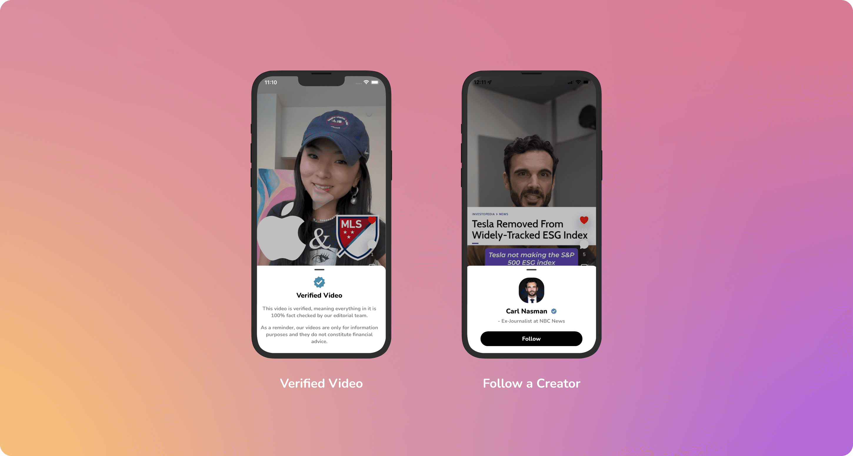 Want to know why you should trust that dashing face on your screen? Tap the creator's name on the bottom left of each video and you can read a short bio. Still want to know more? Give them a quick google, all of our creators are verified finance professionals.